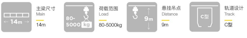 軌道、主梁表面的噴塑層可延長產(chǎn)品的使用壽命,降低維護(hù)成本。 此外,軌道吊掛點(diǎn)距離長達(dá)9m,可最大程度地減少鋼結(jié)構(gòu)的用量,從而降低起重機(jī)的整體成本。同時(shí)起重機(jī)采用模塊式設(shè)計(jì),使您能在企業(yè)需求改變時(shí)有針對性地調(diào)整起重機(jī)系統(tǒng),因而投資該產(chǎn)品對您而言將是明智之舉。